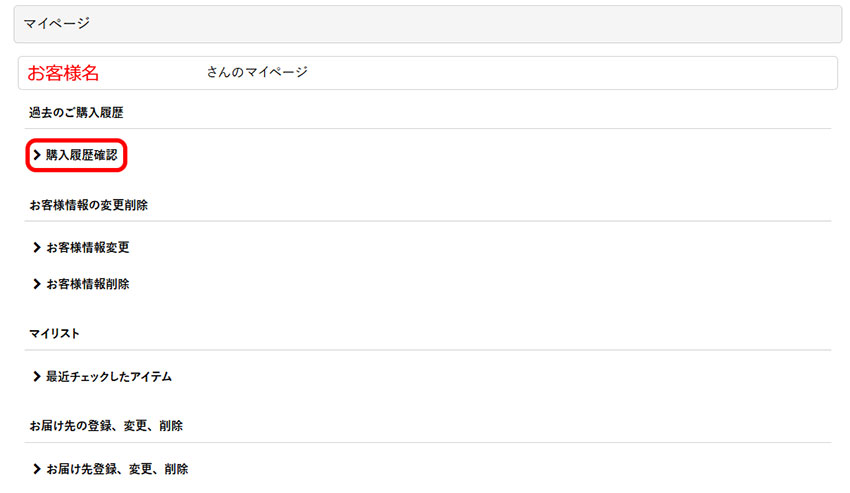 購入履歴確認をクリック
