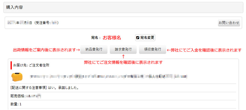 ・領収書: 弊社にてご入金を確認後
