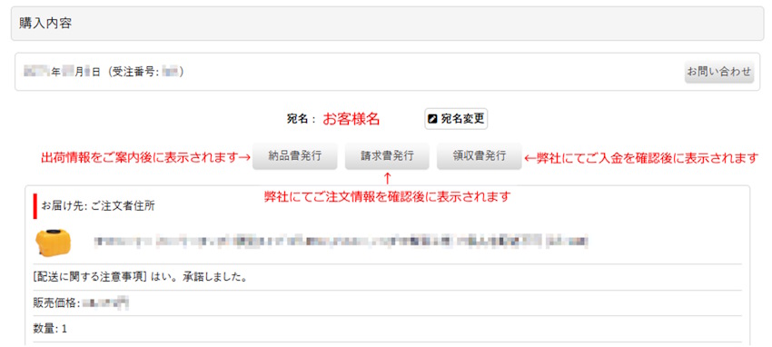 PDFでメールにてお送りいたします。受注番号と必要な書類をメールにてご連絡下さい。
