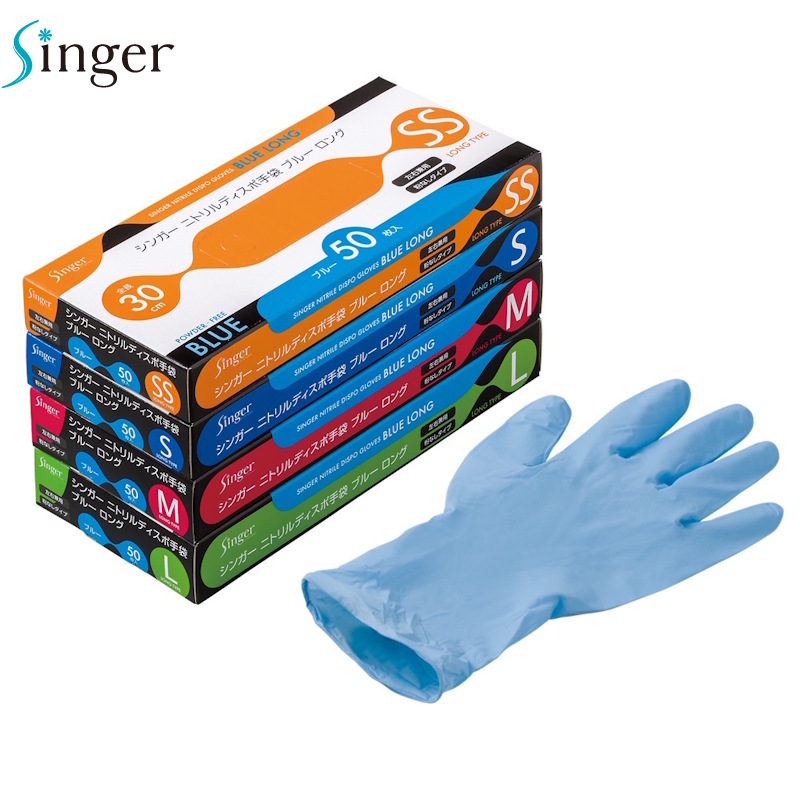 | 製品名 | シンガー ニトリルディスポ手袋 ブルーロング |